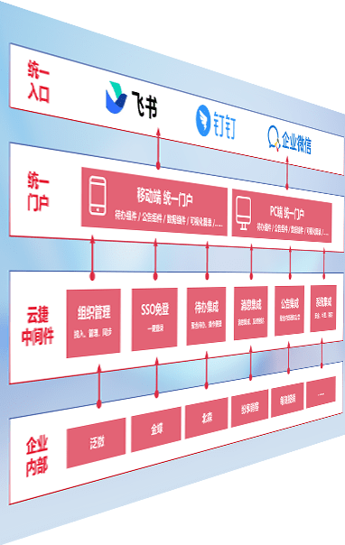 对协作平台提供支持服务,,,,支持企业应用与协作平台对接,,,包含组织同步、、、消息集成、、、待办集成等。。。。支持目前主流的协作平台:钉钉、、、、企微和飞书。。。
