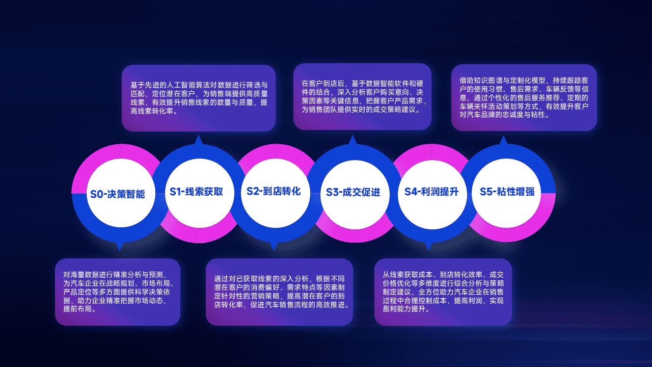 通过拓宽潜在客户来源、、、、优化线索分配并提高到店转化率,,以增强销售效率。。同时,,,利用线索数据不断优化分析模型,,有效提升转化率,,,扩大营销影响力。。。